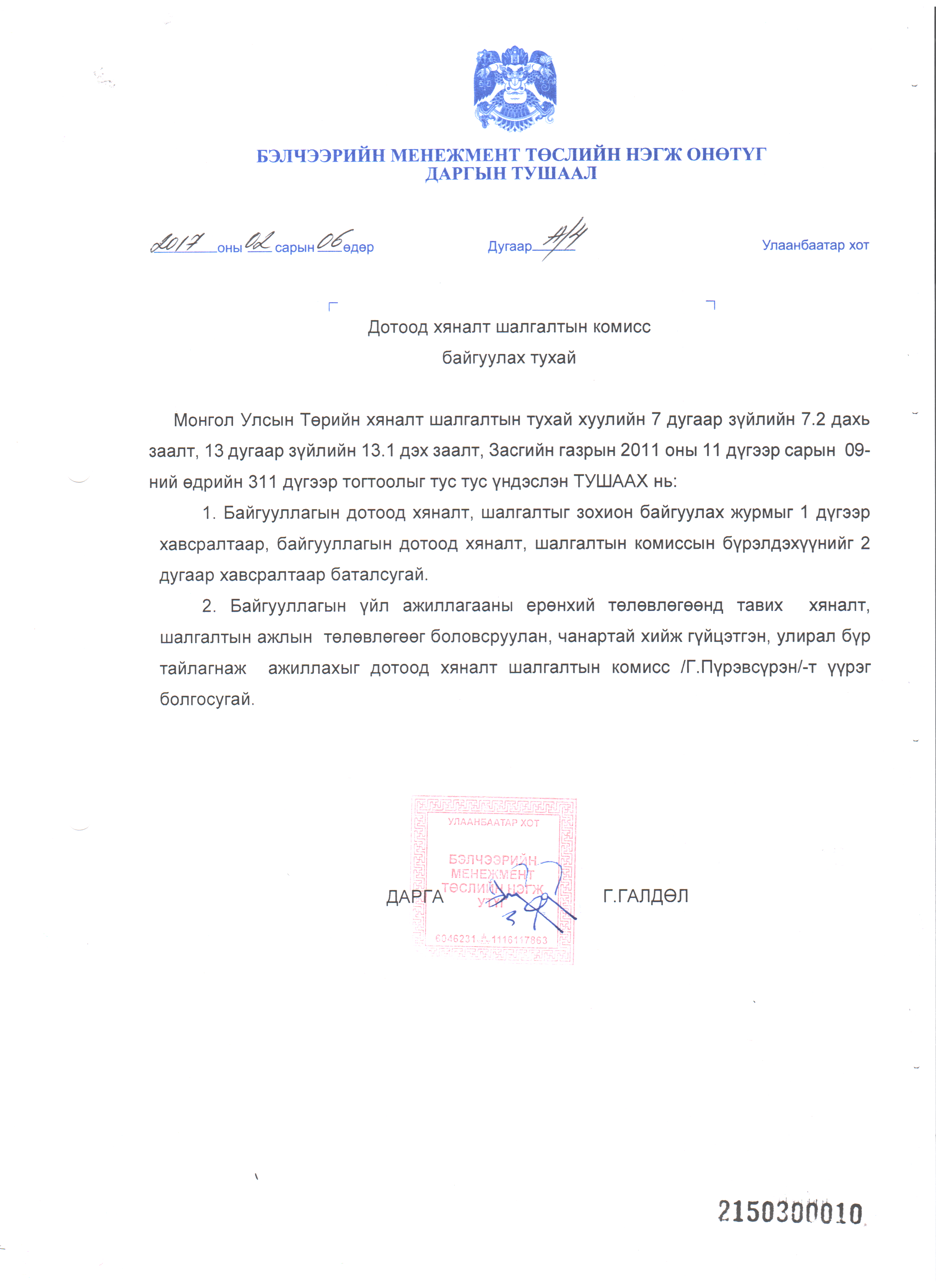 - А/04 Дотоод хяналт шалгалт комисс байгуулах тухай