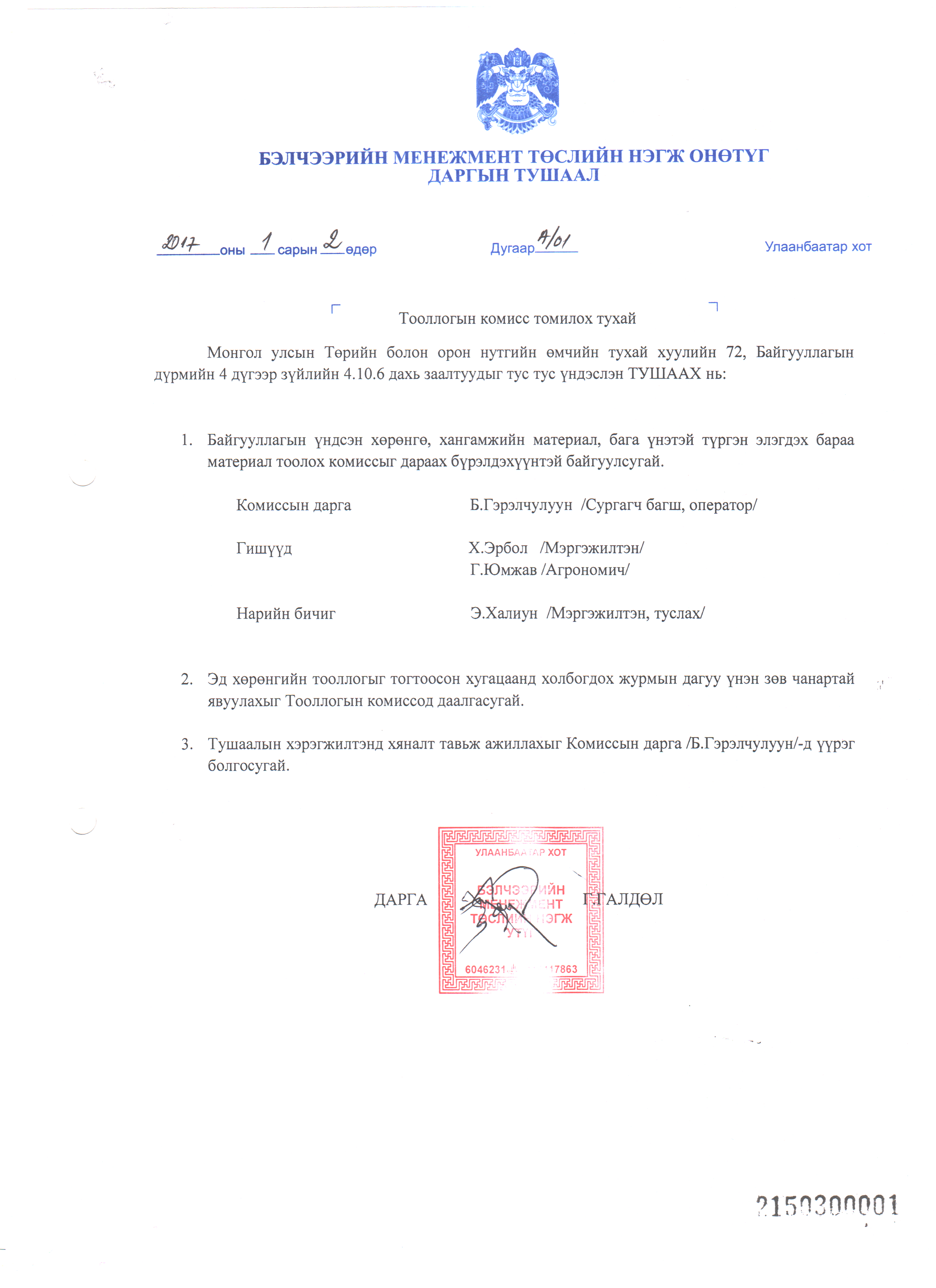 - А/17 Байгууллагын архивын баримтанд нэгдсэн тооллого хийх комисс байгуулах тухай