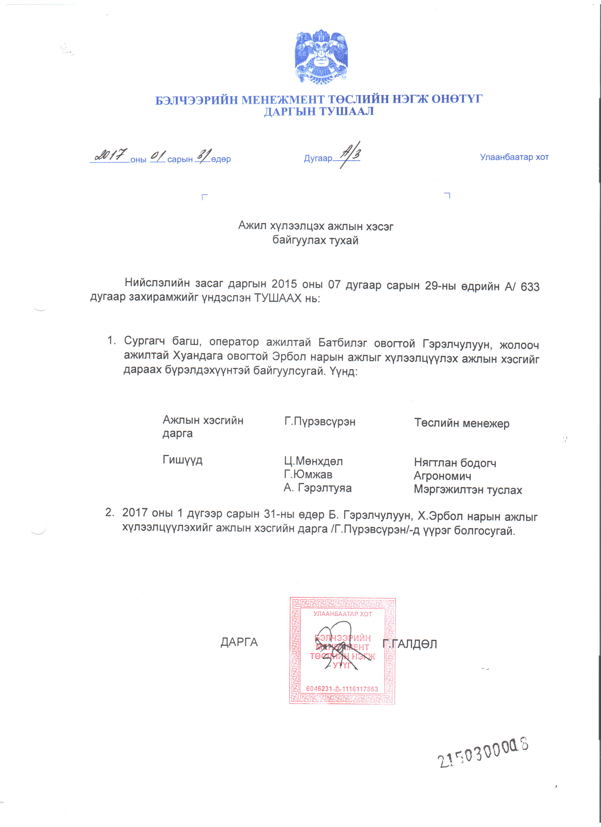 - А/03 Хөдөлмөрийн дотоод журамд өөрчлөлт оруулах тухай